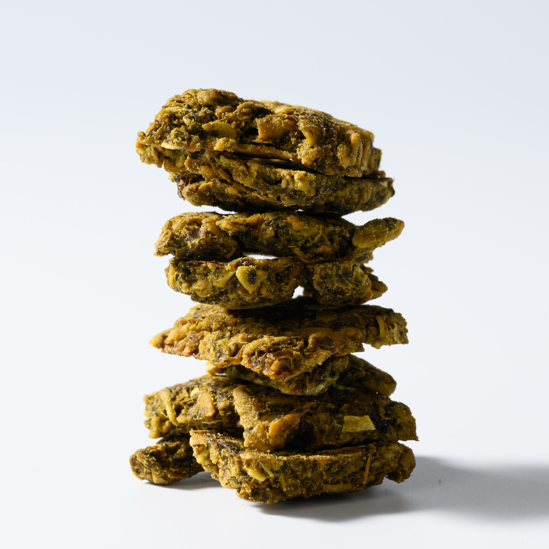 しっかり野菜を使っていますが、グラノーラに近い感覚で味の調整できます。ゴロっとしたグラノーラになっているので、そのままおやつのように食べてもよし。ヨーグルトなどに振りかけてもよし。お好みの素材やフルーツを足しても美味しい。栄養豊富ですので、余すことなく最後までお楽しみください。